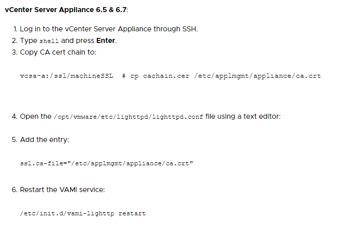 Sever/Certificate vCenter SSL 여행자의꿈 2022. 4. 12. 22:53 https://esxsi.com/2017/09/11/vcenter-ca-certs/ <========= 잘읽어보기 base64 , root CA WinSCP 접속 불가시 http://www.vmwarearena.com/winscp-connection-to-vcsa-failed-received-large-sftp-packe/